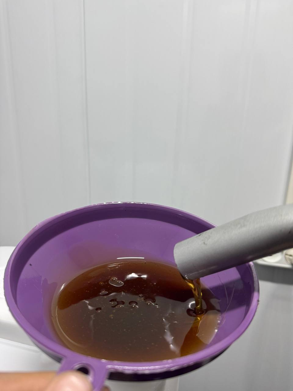 Налейте немного масла в чистую прозрачную емкость. Оригинал отличается: